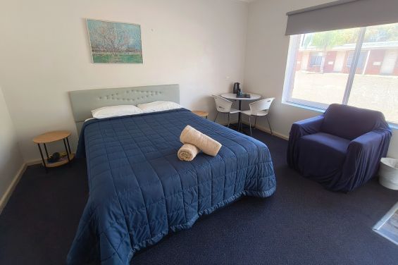 This motel room has a queen-size bed in the first bedroom and 2 single beds in the second bedroom. The room includes air conditioning to keep you cool and comfortable, and an in-room heater and electric blankets are available to keep you warm during colder nights. A desk is provided for work or personal use. A hairdryer is provided for your convenience as well as an alarm clock and an iron and ironing board, and opening windows to allow in fresh air. A radio is available for your entertainment, along with a bar-sized refrigerator to store your snacks and drinks. The room also features a basic kitchenette with essential facilities (microwave, toaster, kettle), perfect for preparing simple meals. For entertainment, you have access to satellite or cable TV, and the room is equipped with a shower. WiFi is provided to keep you connected during your stay.